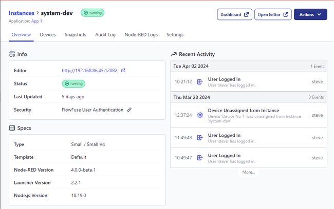 We have added the ability to manage the Node-RED version running on application-assigned Devices within FlowFuse.