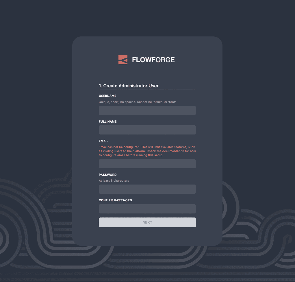 Following a successful install, you will be able to access the platform to go through the initial setup.