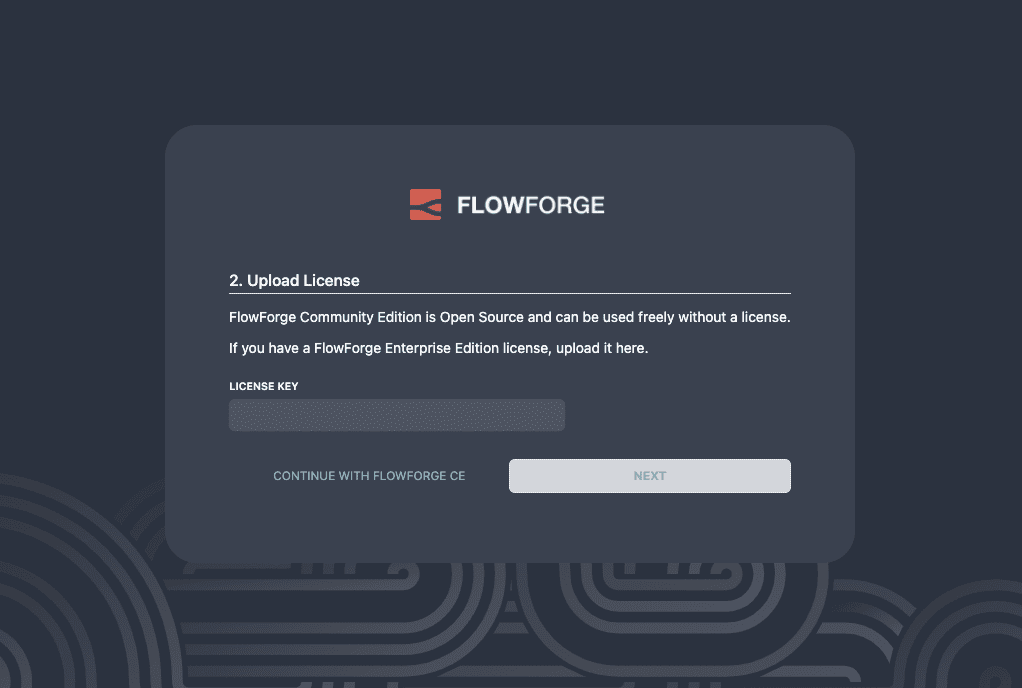 If you have a FlowFuse Enterprise Edition license you can upload it here.