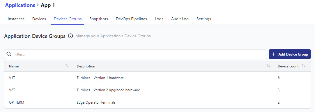 When managing many devices that are intended to run the same snapshot, Device Groups allow you to organise your devices into logical groups. These groups can then be set as the target of a DevOps Pipelines.