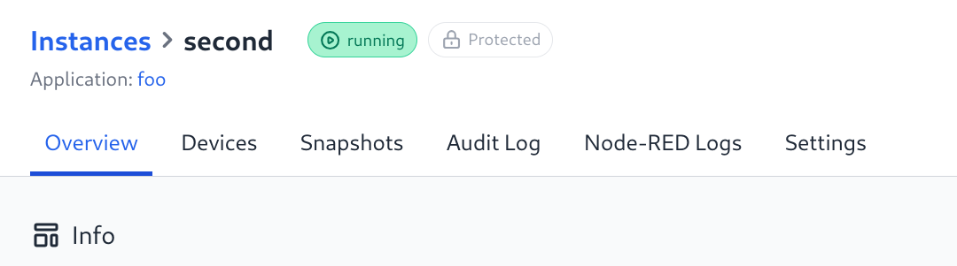 A Protected Instance will be marked by a status badge next to it's running state. Click on this badge will take you to the Settings page.