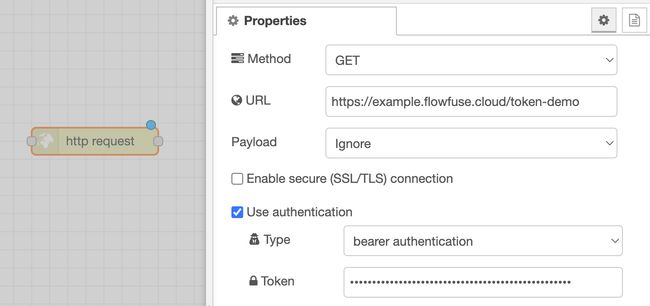 To access it from another Node-RED instance, you can use the HTTP Request node by enabling the 'Use authentication' option, selecting 'bearer authentication' and providing the token: